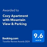 Ein Balkon und eine Terrasse mit einer Klimaanlage sowie einem Flachbildfernseher mit Satellitenkanälen stehen den Gästen vom Cozy Apartment With Mountain View & Parking zur Verfügung. Die Unterkunft verfügt über 2 Schlafzimmer. Das Apartment bietet außerdem 1 Bad.
